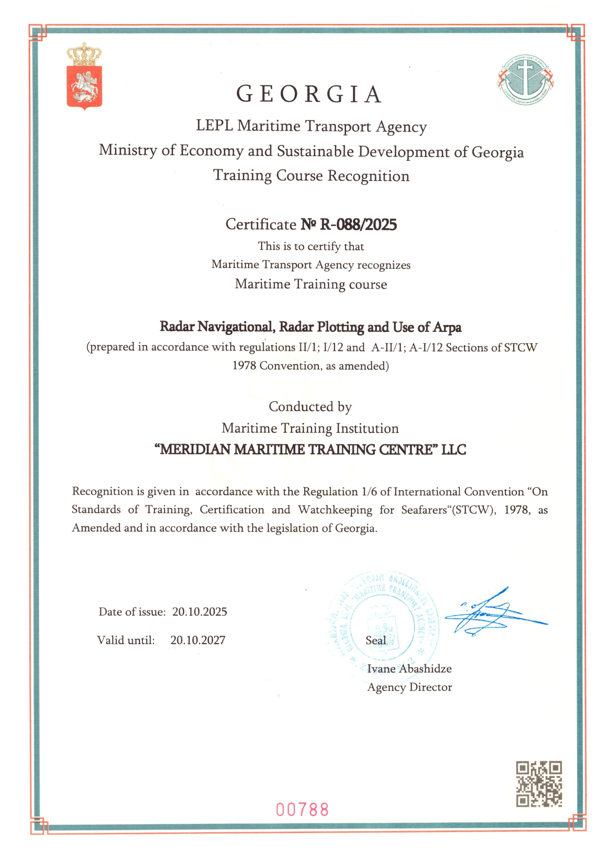 Training Program covers the requirements of the STCW Convention.